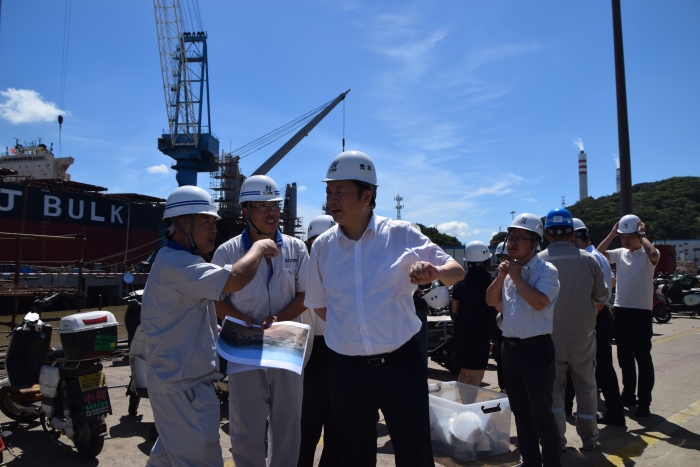 舒開(kāi)鋒副總經(jīng)理重點(diǎn)匯報(bào)了公司當(dāng)前的生產(chǎn)經(jīng)營(yíng)情況。在現(xiàn)場(chǎng)可以看到,船塢碼頭作業(yè)繁忙、處于滿負(fù)荷運(yùn)轉(zhuǎn)狀態(tài),近期更有五大知名集裝箱公司所屬船舶同時(shí)在廠修理,場(chǎng)景頗為壯觀。上半年,公司交船數(shù)量和產(chǎn)值均穩(wěn)步超過(guò)去年同期水平,顯示出良好的發(fā)展勢(shì)頭。